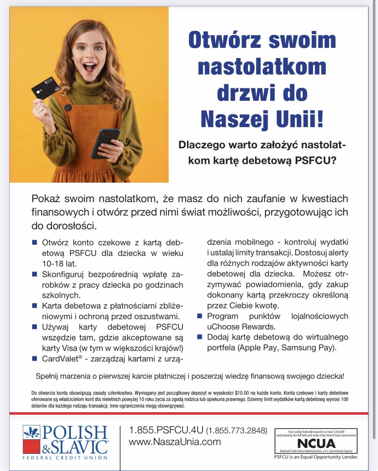 Jutro będziemy gościć przedstawicieli Uni w naszej szkole, Poniżej informacja o kontach dla nieletnich, warunki założenia oraz ulotki promocji w Miesiacu Dziedzictwa Polskiego.